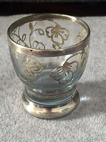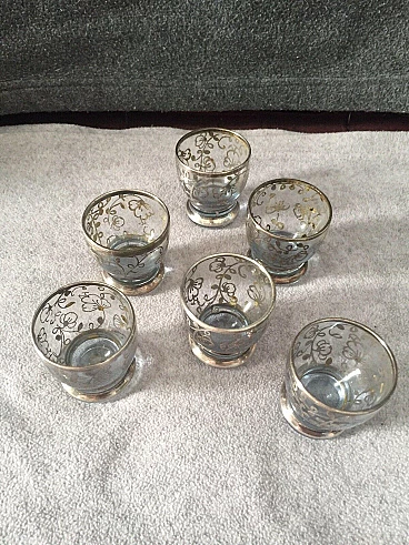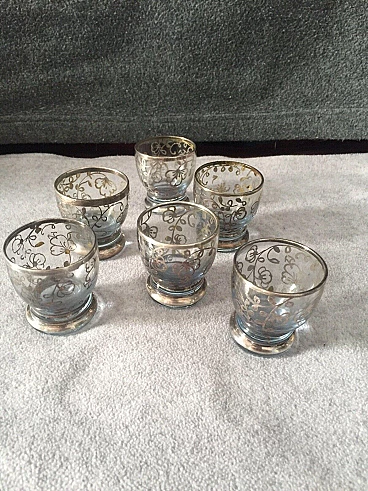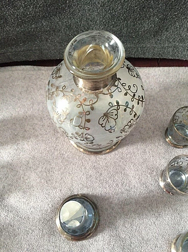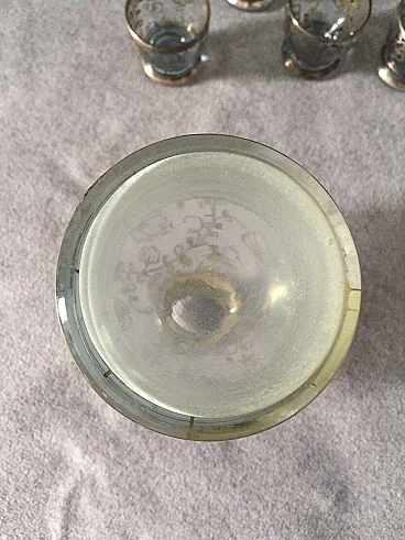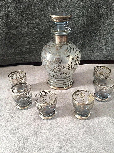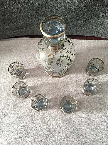 6 Bicchieri e bottiglia da liquore in vetro, metà '800