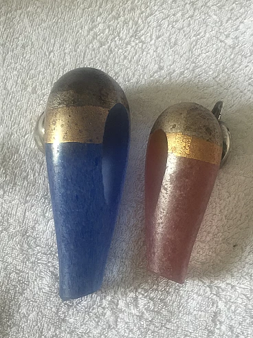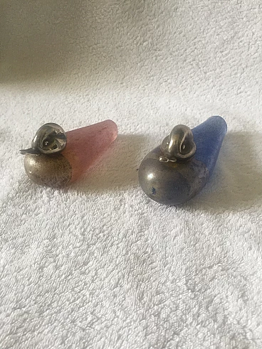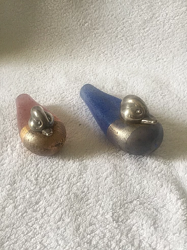 Coppia di papere in vetro scavo di Murano e argento, anni '70