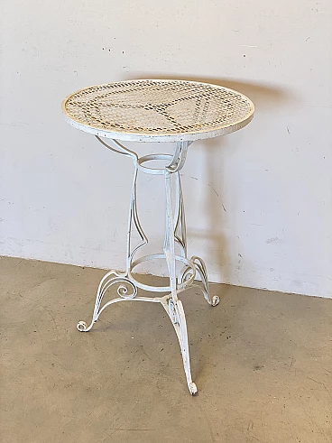 Tavolino da giardino rotondo in ferro battuto bianco, anni '40