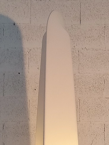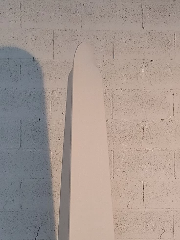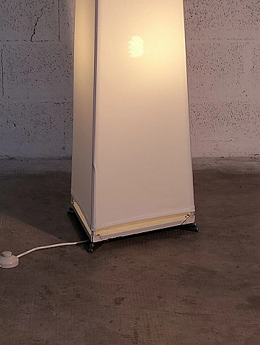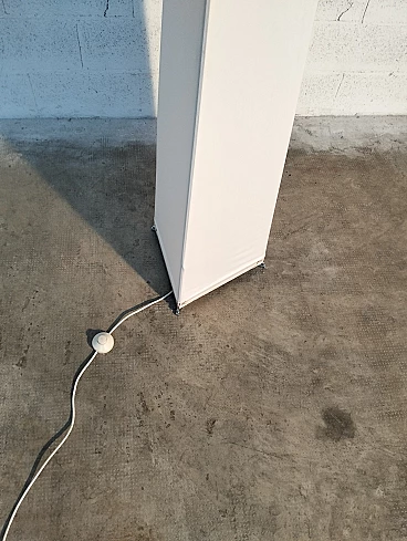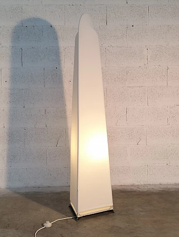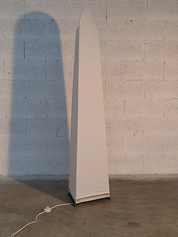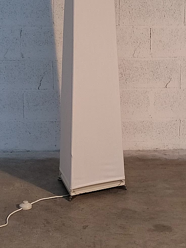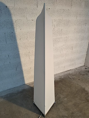 Lampada da terra Kazuki di Kazuhide Takahama per Sirrah anni '80. Struttura in metallo, diffusore in tessuto bianco, supporto a terra in tondino d'acciaio cromato. Presenza eterea che rappresenta appieno il design della leggerezza di Takahama. Takahama, nato nel 1930, ha studiato architettura a Tokyo e dopo la laurea è entrato nello studio di Kazuo Fujioka. Nel 1957 giunge in Italia per supervisionare l'allestimento architettonico del padiglione con cui il Giappone partecipa per la prima volta alla XI Triennale di Milano, dove incontra il designer e imprenditore Dino Gavina (1922-2007) con cui intraprende una collaborazione professionale che durerà tutta la vita. Di conseguenza, nel 1964 si trasferisce a Bologna e va a lavorare come designer di mobili e lampade nella fabbrica San Lazzaro. Nel 1968 Gavina vende la sua azienda Gavina SPA a Knoll International, con il relativo stabilimento di Foligno progettato da Achille Castiglioni, e fonda insieme a Maria Simoncini (1927-2010) la casa produttrice Simon international (poi acquisita da Cassina) e l'anno dopo apre a Bologna il centro espositivo e commerciale intitolato a Marcel Duchamp con la partecipazione del famoso pittore e fotografo dadaista Man Ray. In queste nuove sedi, Takahama ebbe modo di collaborare con il famoso architetto e designer Carlo Scarpa e negli anni successivi svolse un'intensa attività professionale che portò alla creazione di vari tipi di mobili e lampade, che costituiscono ancora oggi altrettante opere d'arte, caratterizzate sempre da una grande semplicità e clandestinità formale e molto spesso rigorose come le composizioni zen. Takahama ha continuato a svolgere la sua attività di designer fino alla sua morte, avvenuta nel 2010. Sirrah nasce a Imola nel 1968 prendendo il nome da una stella della costellazione di Andromeda. Debutta nel 1968 alla Triennale presentando una serie di lampade disegnate dallo studio Albini-Helg-Piva. Da questa data inizia la produzione industriale mantenendo inalterate le caratteristiche artigianali dei prodotti: raffinatezza, estrema cura dei dettagli. Nel 1973 la collaborazione con Takahama introduce l'uso di nuovi materiali: il designer giapponese inizia a utilizzare un tessuto resistente al calore, elastico e lavabile con cui realizza diverse lampade. Negli anni '90, dopo l'acquisizione di Sirrah da parte di iGuzzini Illuminazione (1994), l'attenzione si sposta decisamente verso la produzione di apparecchi di illuminazione per specifici settori di mercato. Dal giugno 2004 Sirrah è stata incorporata, attraverso una fusione, in iGuzzini Illuminazione.