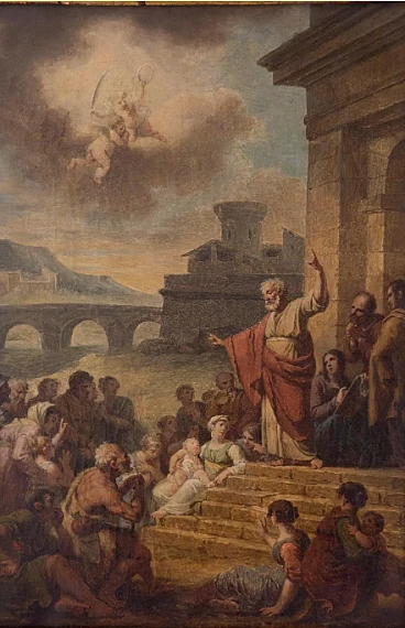 Tela raffigurante la predicazione di San Pietro, '900