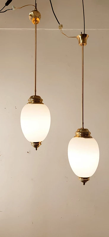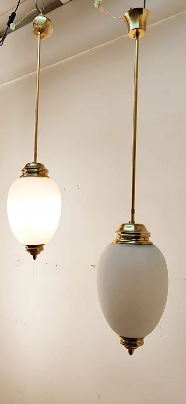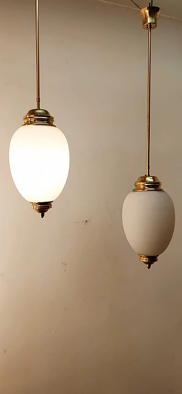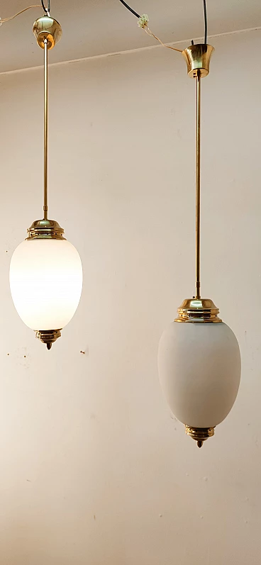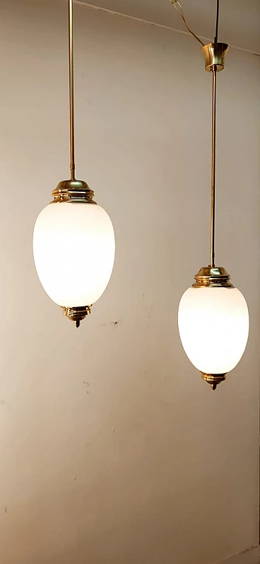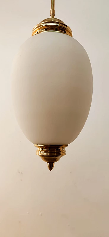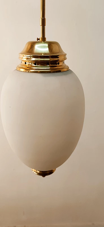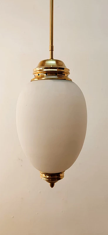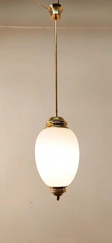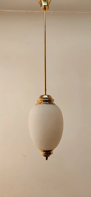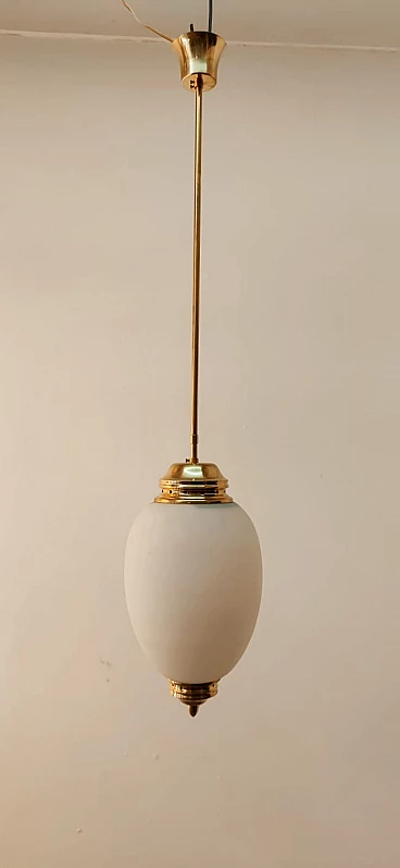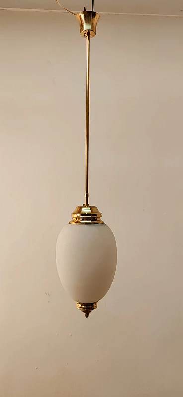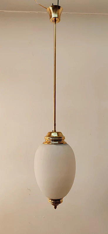 Lampada a sospensione in ottone e vetro di Luigi Caccia Dominioni, anni '60
