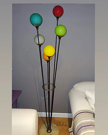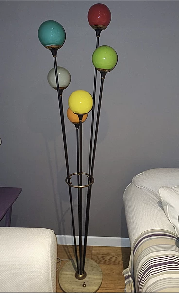 Lampada da terra Alberello in metallo, vetro e marmo per Stilnovo, anni '50