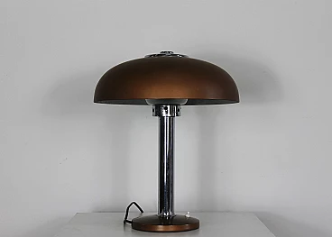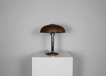 Lampada da tavolo 546 di Gio Ponti per Ugo Pollice, anni '40. Base in ghisa laccata, stelo in ottone cromato, diffusore in vetro opalino e paralume in alluminio laccato.