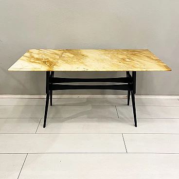 Tavolino con piano in marmo e gambe in legno, anni '50