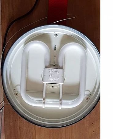 Lampadario Diskos in plastica di Giovanni Offredi per Sirrah, 1983