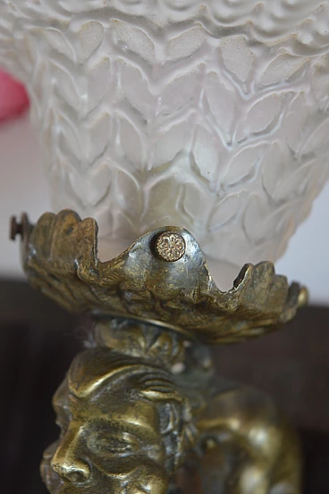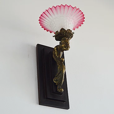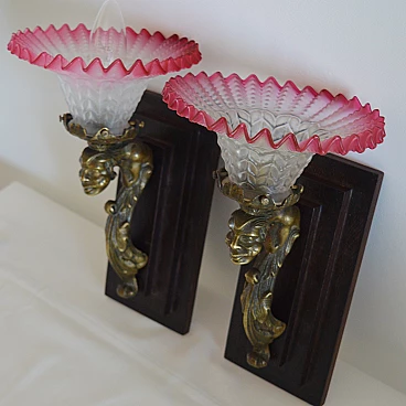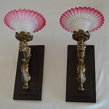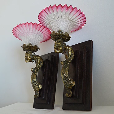 Coppia di applique Art Deco con gargoyle e basi in legno, anni '30