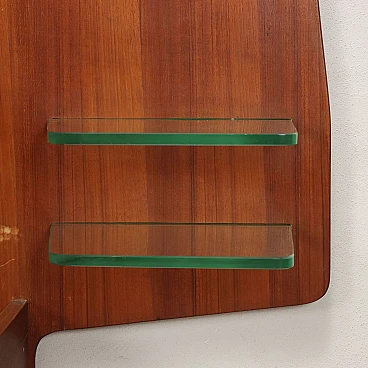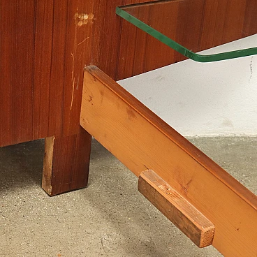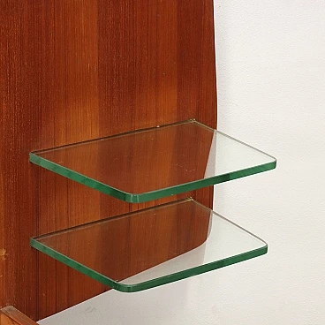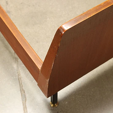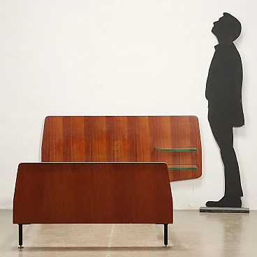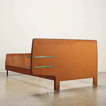 Letto singolo in mogano impiallacciato con mensole in vetro, anni '60
