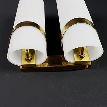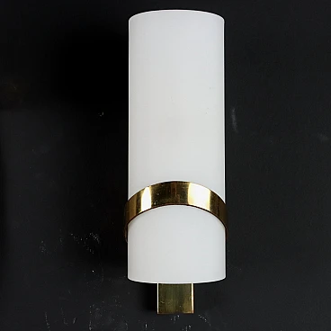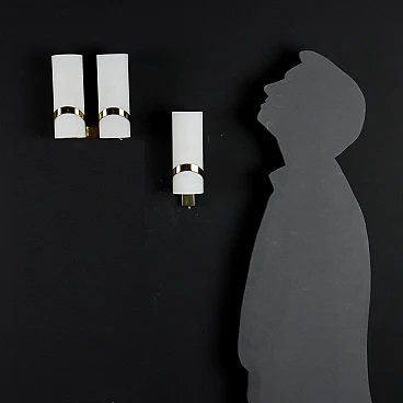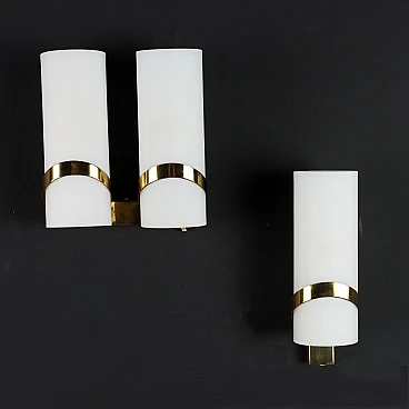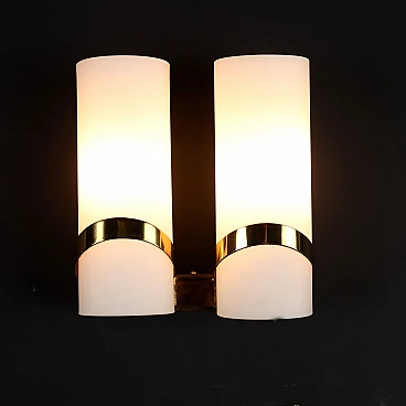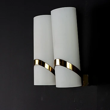 Coppia di lampade da parete in vetro opalino e ottone, anni '60