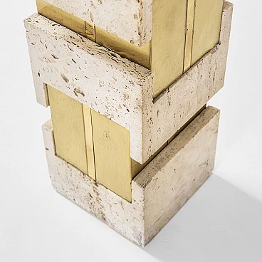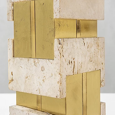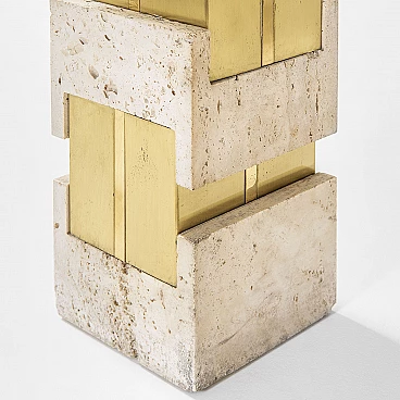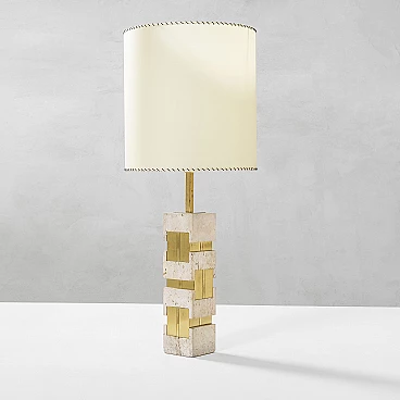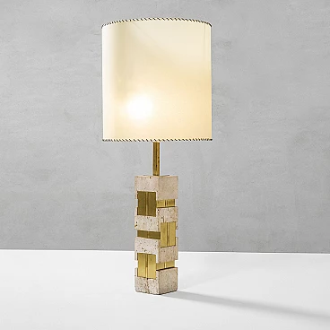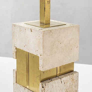 Lampada da tavolo con base in travertino e ottone di Gaetano Sciolari, anni '70