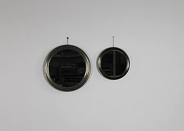 Coppia di specchi da parete Narciso di Sergio Mazza per Artemide, fine anni '60. Cornici in ottone nichelato spazzolato e cristallo a specchio.