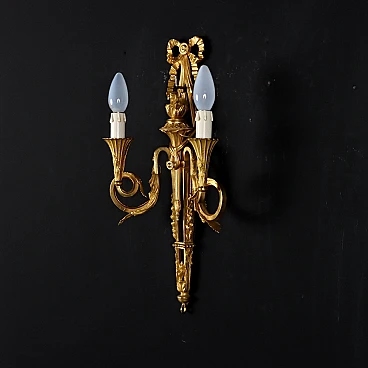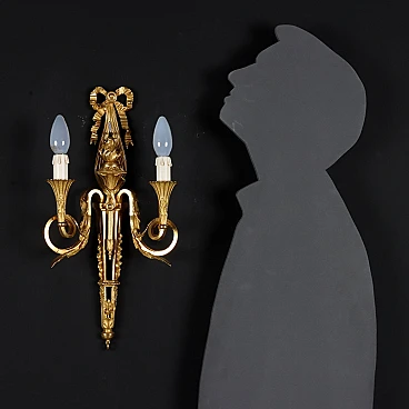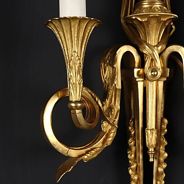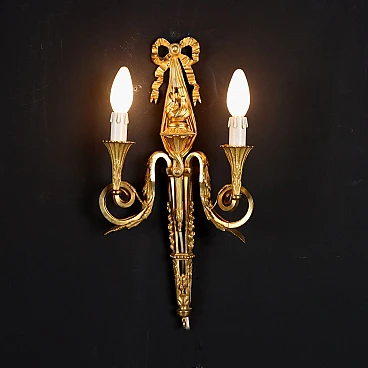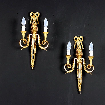 Coppia di applique a due luci stile Neoclassico in bronzo dorato