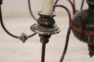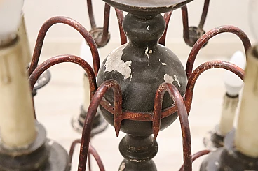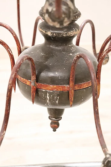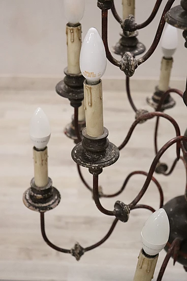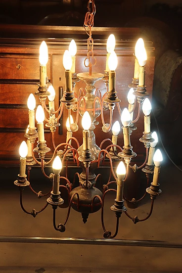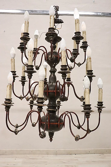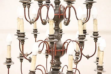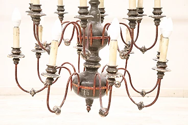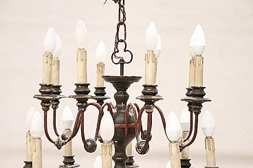 Lampadario a ventiquattro luci in legno e ferro, inizio '900