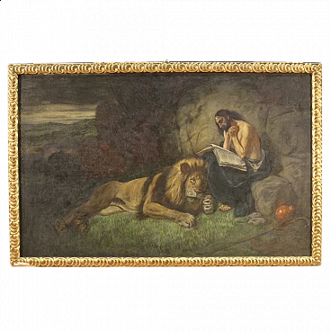 San Girolamo e il leone, dipinto a tecnica mista su tela