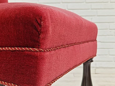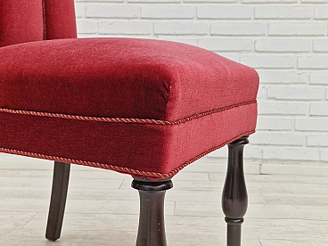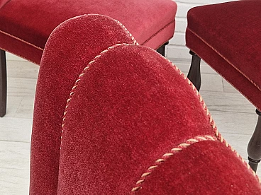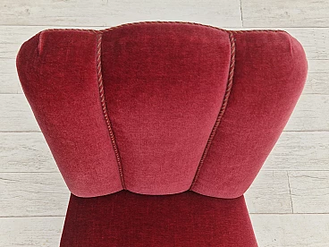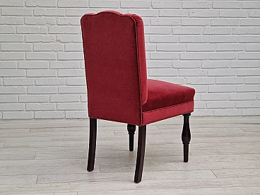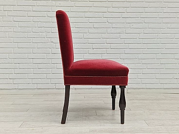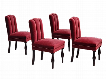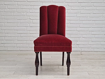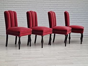 4 Sedie danesi in quercia con rivestimento in velluto rosso ciliegia, anni '50
