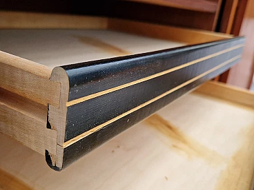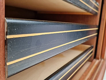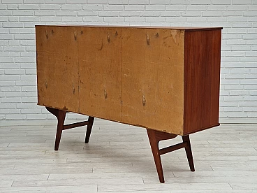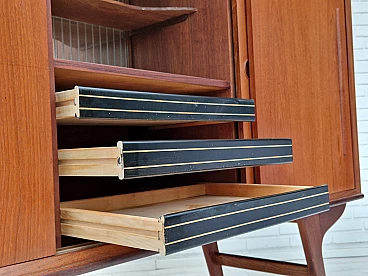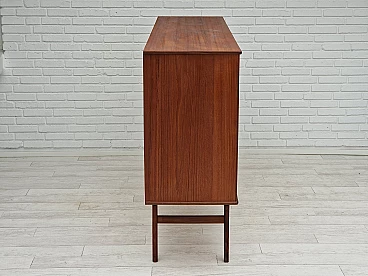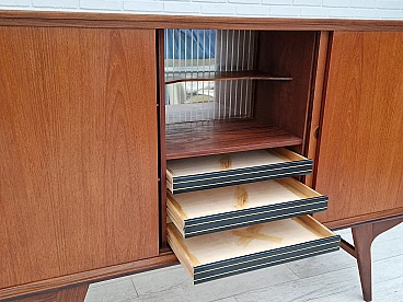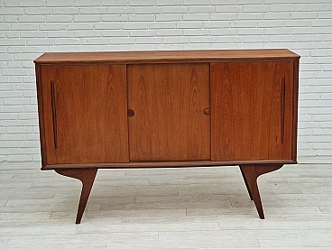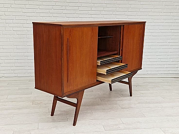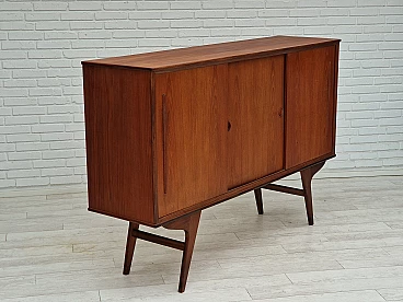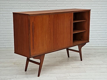 Credenza danese in teak con ante scorrevoli e interno specchiato, anni '60