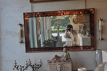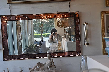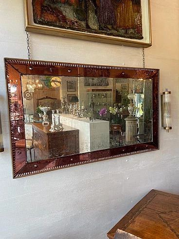 Specchiera con cornice in legno e fascia in vetro specchiato rosa, anni '40