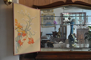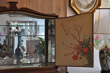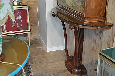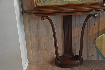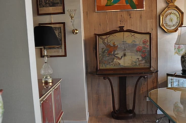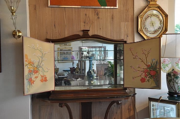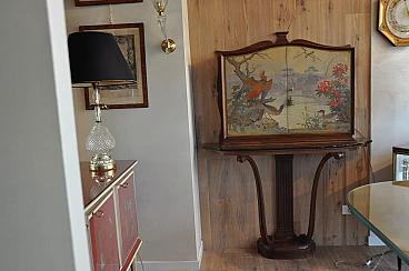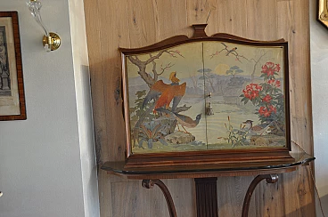 Mobile bar Art Deco in mogano con piano in vetro e mobiletto dipinto, anni '40