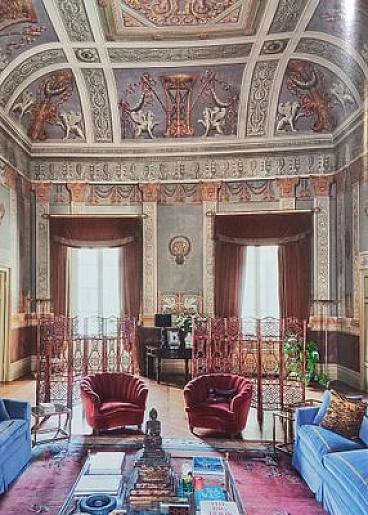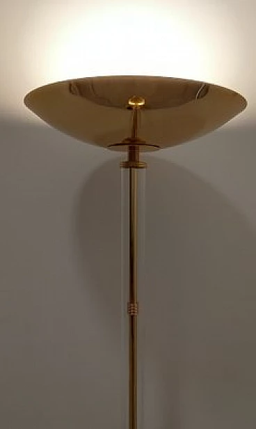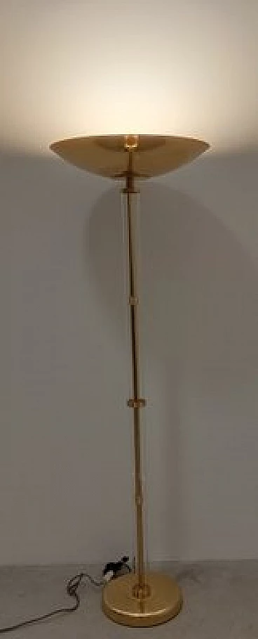 Lampada da terra in ottone lucido e vetro di Murano, anni '2000