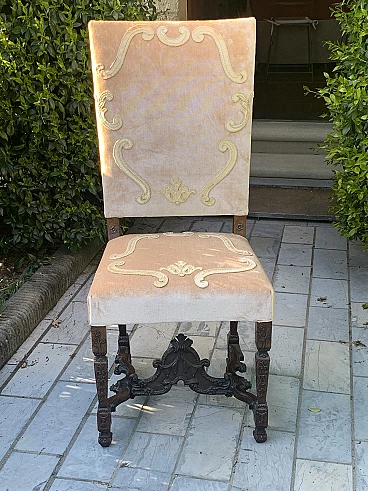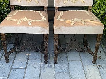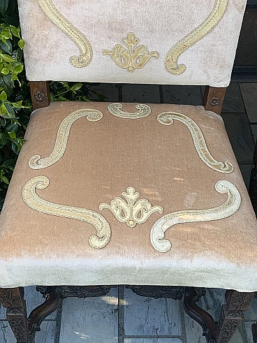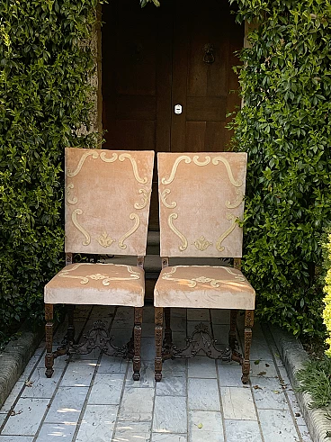 Coppia di sedie lombarde Luigi XIV in legno e velluto rosa, '700