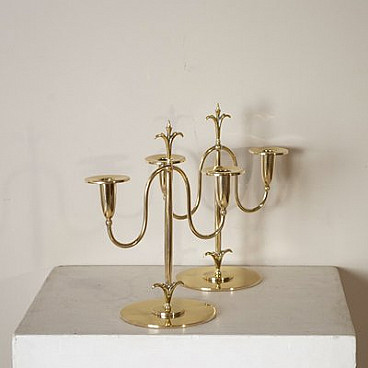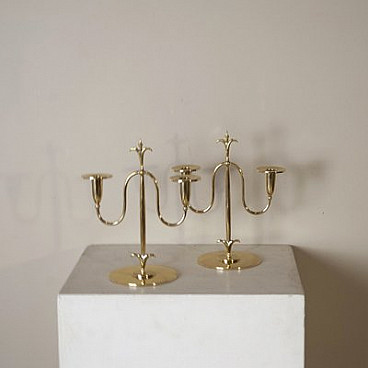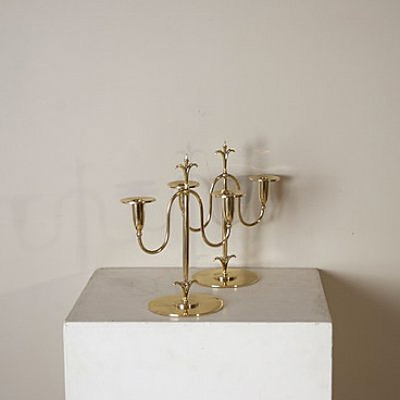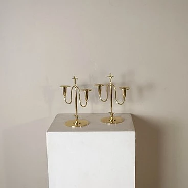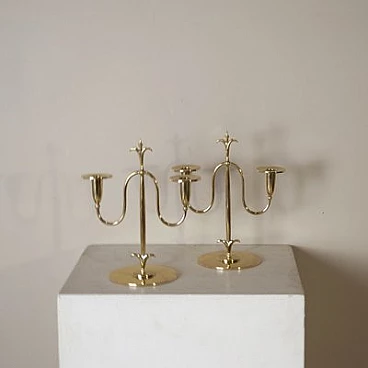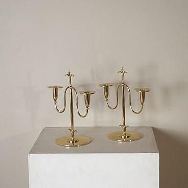 Coppia di candelabri Art Déco in ottone di Gunner Ander, anni '30