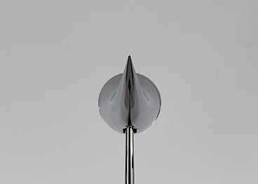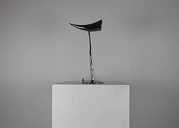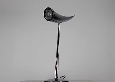 La lampada da tavolo o da scrivania Ara in cromo lucido fornisce un'illuminazione diretta. La testa si regola per dirigere l'illuminazione con un angolo di 90 gradi. Disegnata da Philippe Starck nel 1988 per Flos.