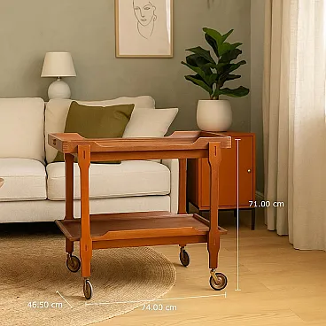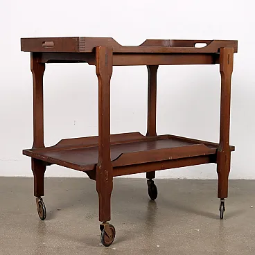 Carrello bar in faggio tinto e impiallacciatura di mogano, anni '60