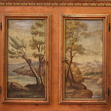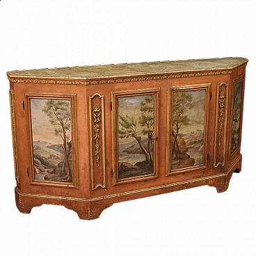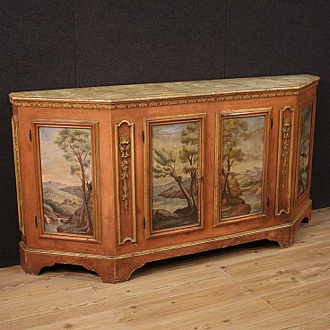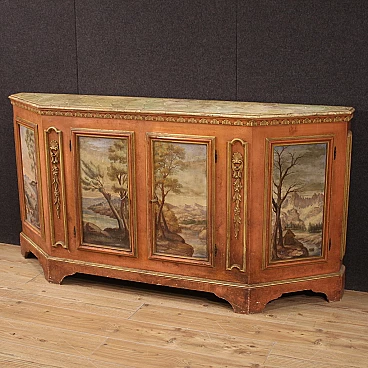 Credenza veneta in legno con paesaggi dipinti, anni '50
