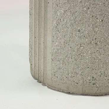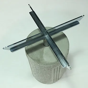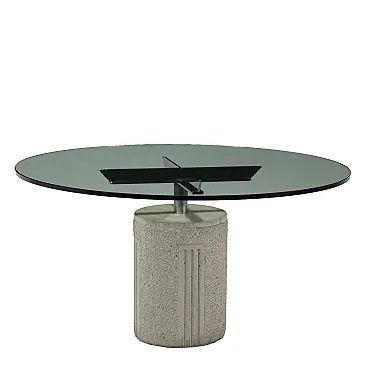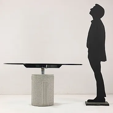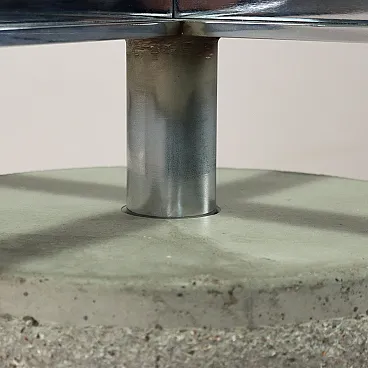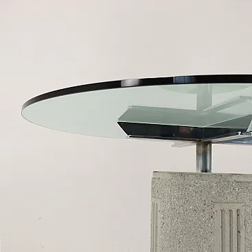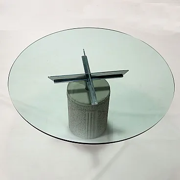 Tavolo rotondo con base in cemento, struttura in metallo e piano in vetro, anni '70