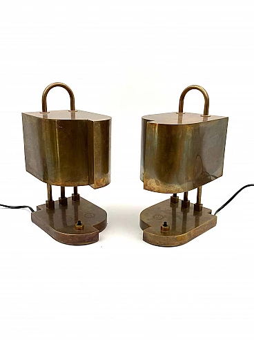 Raro paio di lampade da tavolo in ottone Bauhaus / scrivania / sidebed disegnate da Marcel Breuer. Contrassegnato su base con marchio "Bauhaus -Weimar -Staatliches" . 22 x 14 x 32 cm Condizioni: eccellente, coerente con l'età. Sistema elettrico rinnovato.