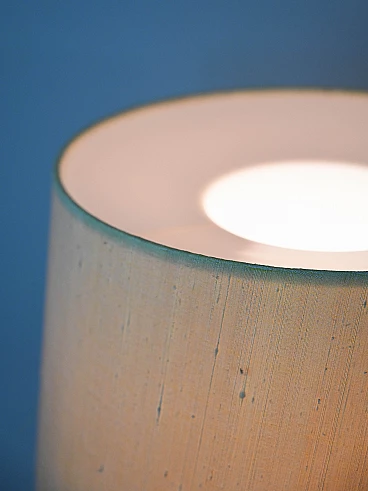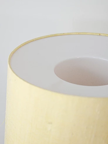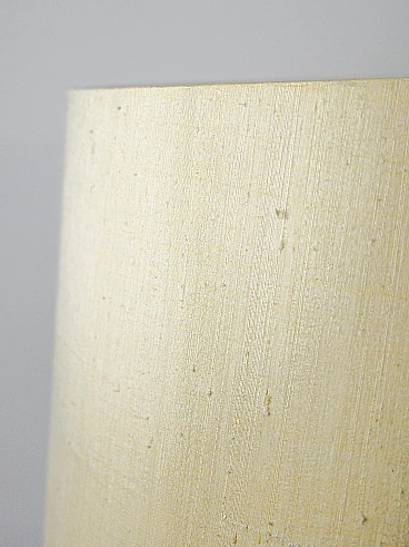 Lampada da terra anni ‘60 con paralume in tessuto. Questo complemento dal gusto classico presenta una struttura in metallo dorato e un paralume cilindrico in tessuto. Ideale per dare un tocco retrò a una stanza dallo stile contemporaneo. Buone condizioni. Potrebbe presentare dei segni del tempo. Per piacere presta attenzione alle fotografie. L’impianto elettrico è originale d’epoca, si consiglia la sostituzione per un corretto utilizzo.