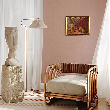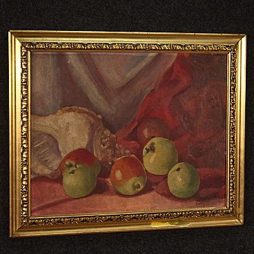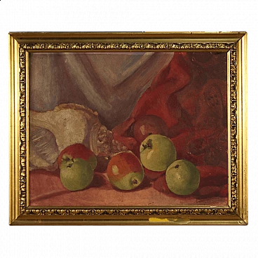 Dipinto di natura morta con conchiglia e mela, olio su tavolo, 1930