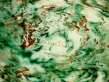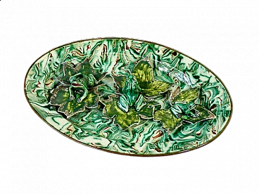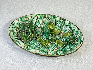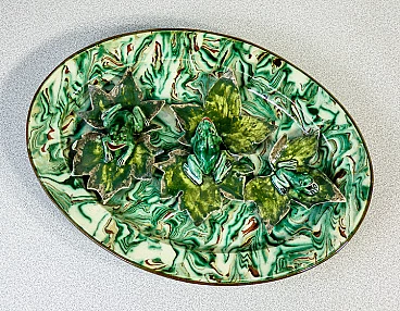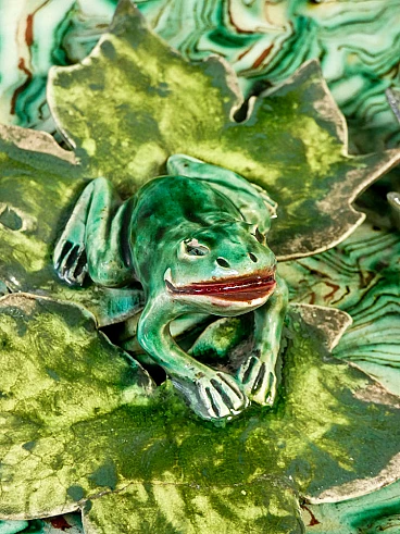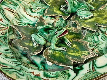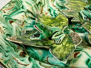 Vassoio in maiolica e smalto con rane e foglie di Pichon Uzès, '800