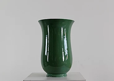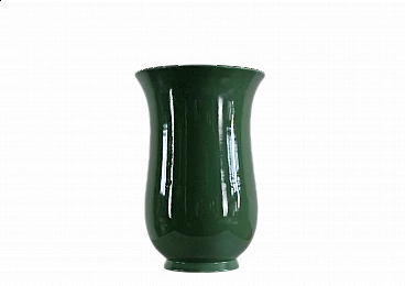 Vaso in ceramica verde di Gio Ponti per Richard Ginori, anni '30-'40. Caratterizzato da un'elegante e raffinata forma svasata che lo rende un perfetto elemento decorativo. Marchio impresso sotto la base.