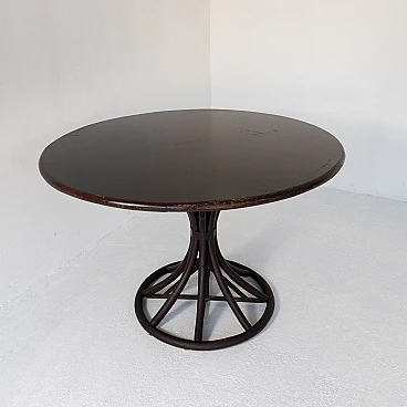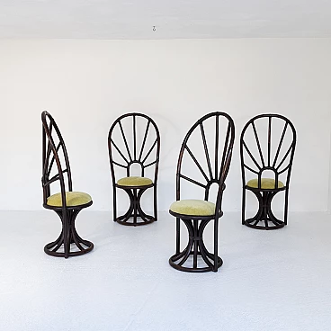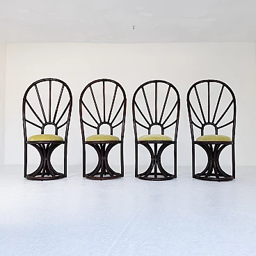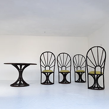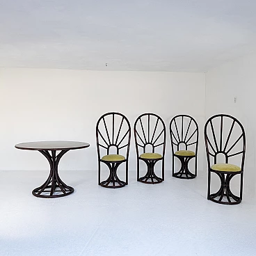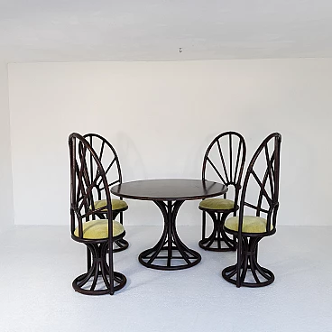 4 Sedie con tavolo tondo in bambù e faggio, anni '70