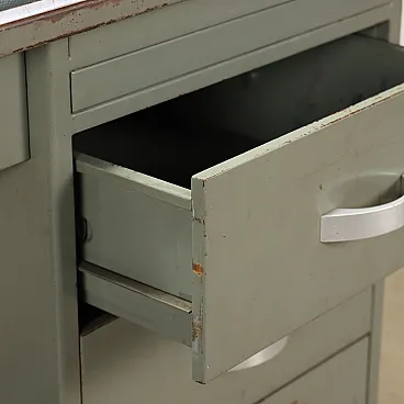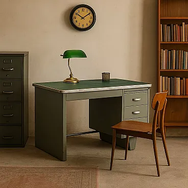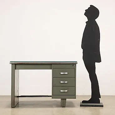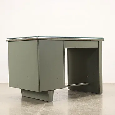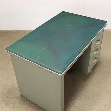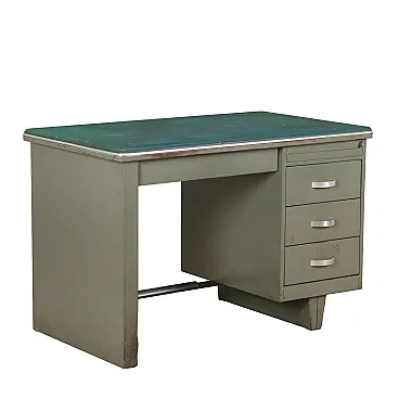 Scrivania in metallo smaltato con piano in similpelle, anni '60