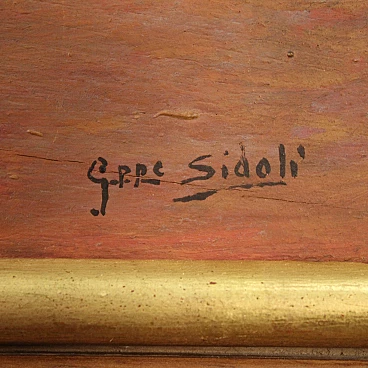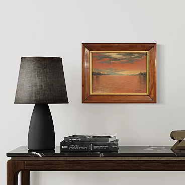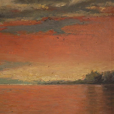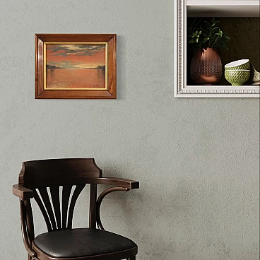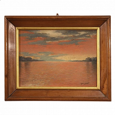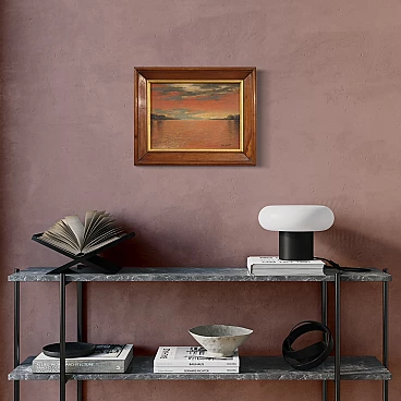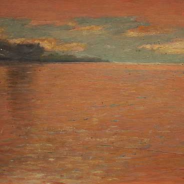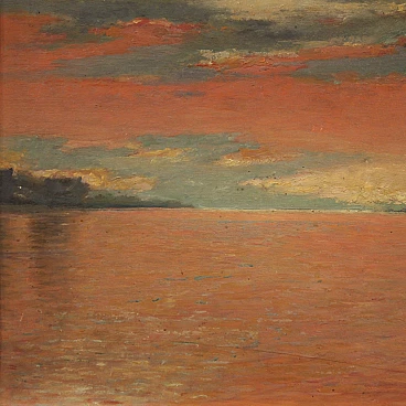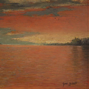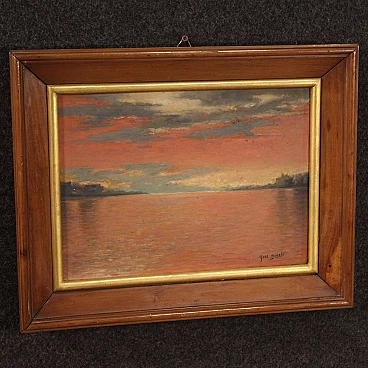 Giuseppe Sidoli, paesaggio marino all'alba, dipinto a olio su tavoletta
