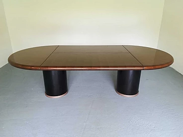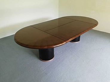Grande tavolo dirigenziale in noce e plexiglass nero