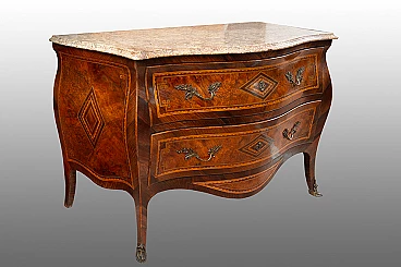 Cassettone Luigi XV napoletano in legno esotico e marmo, '700