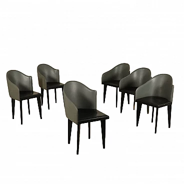Gruppo di 6 Sedie Tuscana di Piero Sartogo e Nathalie Grenon per Saporiti Italia, con schienale in legno ricurvo imbottito e rivestito in similpelle, seduta imbottita e rivestimento in similcuoio. Altezza seduta (cm): 47