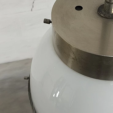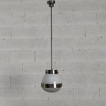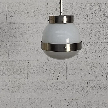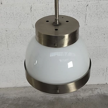 Lampada a sospensione "Delta" di Sergio Mazza per Artemide anni '60, '70. Sergio Mazza è un designer italiano nato nel 1931 a Milano. Nel 1955 inizia la libera professione e dal 1961 affianca G. Gramigna nello studio Smc, occupandosi di arredamento e design industriale. Tra i vari riconoscimenti e premi ricevuti, ricordiamo la menzione al Compasso d'Oro 1960 per la lampada Delta di Artemide e la medaglia d'argento per l'appartamento italiano alla X Triennale di Milano. Dal 1967 inizia a disegnare anche per Olivari, firmando le maniglie Macco, fino al modello Giuliana, con Gramigna, nel 1987. In campo editoriale, sempre con Gramigna, dirige la rivista "Ottagono" dalla sua fondazione fino al 1988. Artemide è un'azienda specializzata nella produzione di accessori per l'illuminazione (lampade, lampadari, punti luce), fondata da Ernesto Gismondi e Sergio Mazza nel 1959. Il marchio si è caratterizzato fin dall'inizio per una grande attenzione al design che ha permesso negli anni di vincere numerosi premi internazionali per i suoi prodotti. Tra i nomi più prestigiosi del design italiano, Artemide è anche una delle aziende leader a livello mondiale nell'illuminazione residenziale e professionale di alta gamma. Già nel 1967 riceve il suo primo premio il prestigioso Compasso d'Oro per la lampada Eclisse, disegnata da Vico Magistretti. A questo premio ne seguono molti altri, a livello nazionale e internazionale, facendo di Artemide una delle aziende simbolo nel settore delle lampade di design. Nel 1996 Artemide fa suo un nuovo manifesto, nel quale si identifica ancora oggi: con il motto "The Human Light" l'azienda milanese sottolinea la volontà di mettere la luce al servizio dell'uomo e dei suoi bisogni. La filosofia di Artemide fu subito accettata dal pubblico e il successo del marchio crebbe progressivamente, dimostrato anche dalla sua presenza nei più prestigiosi punti vendita e nei maggiori musei d'arte moderna del mondo. Fin dalla sua nascita, Artemide ha collaborato con i più importanti nomi del design internazionale, perseguendo obiettivi ambiziosi in termini di tecnologia, estetica e rispetto per l'ambiente.
