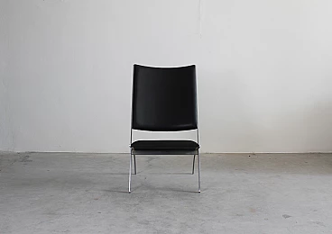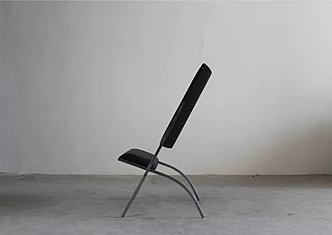 Sedia pieghevole Gabriella (o D270 2) disegnata da Gio Ponti negli anni '70 e prodotta in edizione limitata di 100 pezzi nel 1991 da Paolo Pallucco. Struttura in acciaio, seduta e schienale rivestiti in vinile nero.
