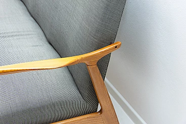 Divano in stile scandinavo in faggio curvato e tessuto di Krásná Jizba, anni '60
