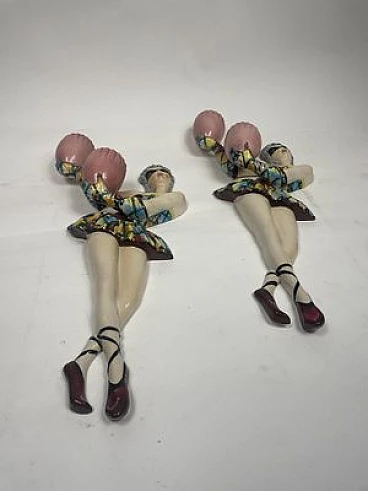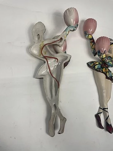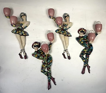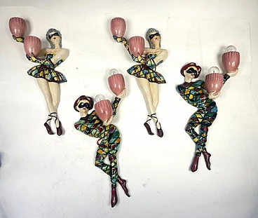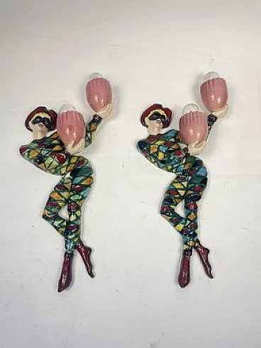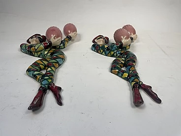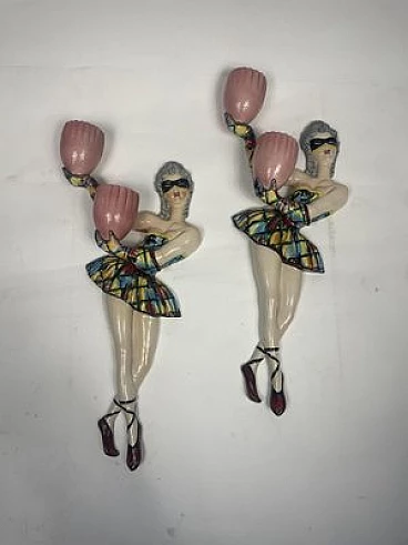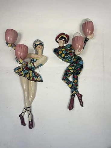 Coppia di lampade da parete Arlecchino in ceramica smaltata, anni '50, set di 2