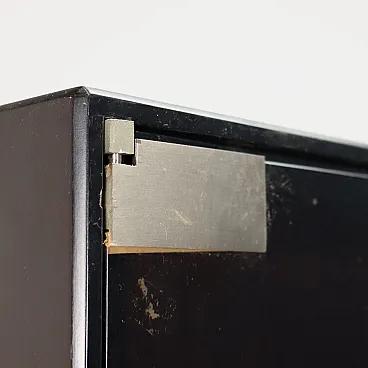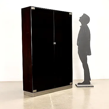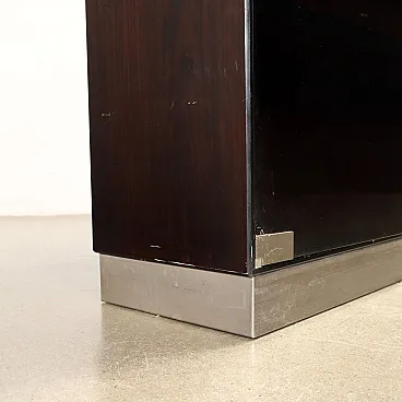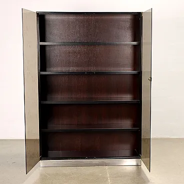 Vetrina in legno, vetro fumé e alluminio cromato, anni '70