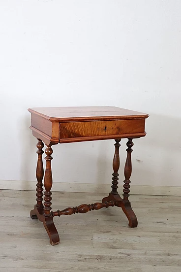 Tavolino Luigi Filippo in noce con cassetto, metà '800