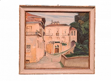 Dipinto su tela intitolato "Il Palazzo dei Marchesi" realizzato da Giulio Boetto nell'agosto 1955. Firmato e datato in basso a sinistra.