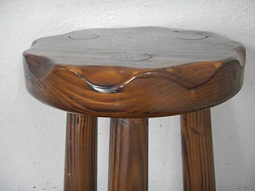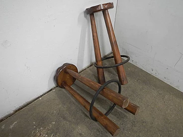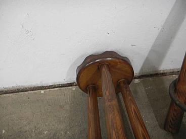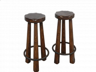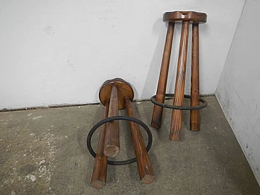 Coppia di sgabelli rustici in abete con poggiapiedi in metallo, anni '80