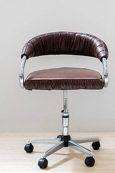 Sedia Cobra in pelle marrone di Giotto Stoppino per Kartell, anni '70