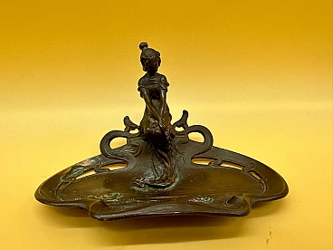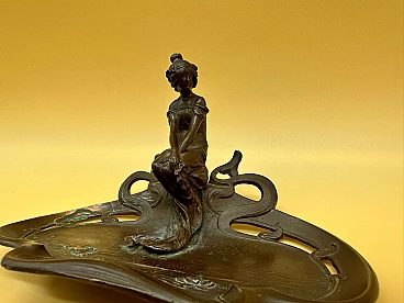 Svuota tasche con fanciulla seduta in laghetto con ninfee, inizio '900